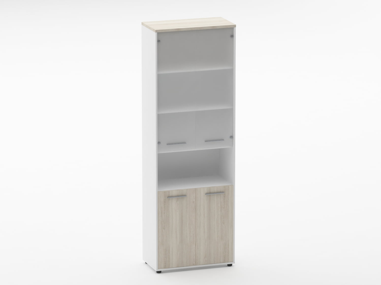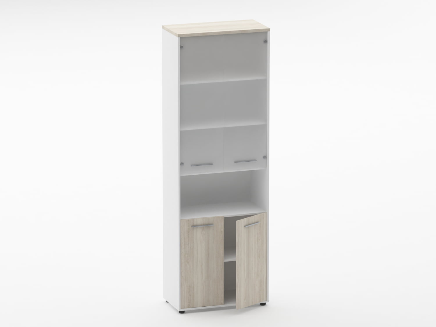 Шкаф 5 широкий верх стеклянная дверь, низ закрытый, с нишей Персона Грата Deka 10.23.181 Дуб Сантана светлый/Белый