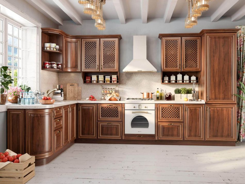 КухняКантри- идеальное решение для ценителей удобного и при этом индивидуального стиля. Строгую форму прямоугольного профиля подчеркивает изящная ручка и резьба на фасадах. Фасады представлены вдревесных оттенках, задающих тон всей кухне. Кухонные модули можно скомпоновать и создать гарнитур любой конфигурации под разные размеры помещения. Вставки из стекла делают кухню более лёгкой, а дизайн нестандартным. Благодаря широкому модульному ряду кухниКантриможно обустроить каждый сантиметр пространства, создав максимально функциональную кухню. Вы получаете индивидуальную кухню по фабричной цене. По функциональному и стилевому решению можно использовать различные шкафы, добавлять модули, чередовать их, создавая необычную композицию. Стиль - классический, Прованс.Условия покупки