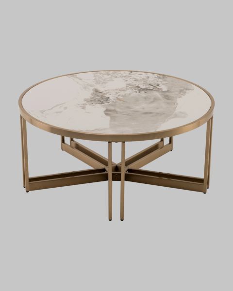 Журнальный столик Stool Group Алиада 90х90 см светлая керамика сталь шампань
