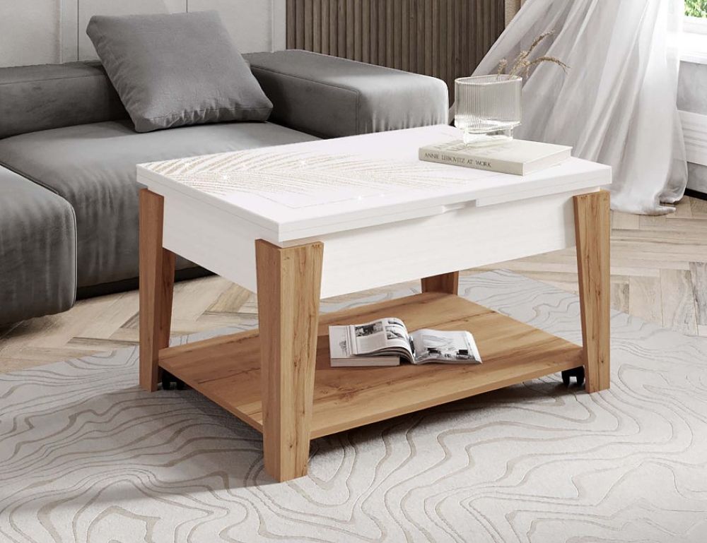 Журнальный стол-трансформер Витра Агат 34 03 Белый шпон-Дуб Вотан