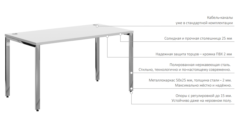 | Комплектация | Каждая столешница комплектуется двумя траверсами. |