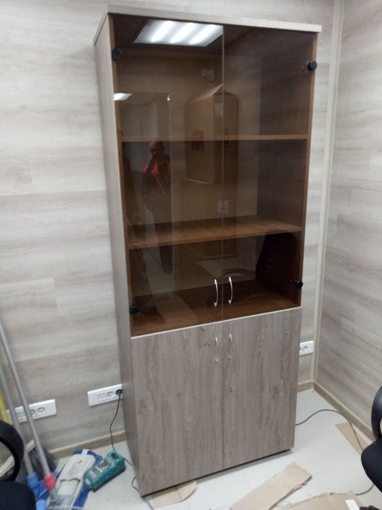 Материалы Экологически чистая ДСП, класс эмиссии Е1, покрытое износостойким ламинатом пр-во Россия Каркасы итопы шкафов обработаны кромкой ПВХ 0,45мм пр-во Германия Стеклянные двери в шкафах выполнены из тонированного в массе стекла 4мм. Толщины Толщина топов шкафов 22мм, толщина каркасов шкафов 16мм. Фурнитура Лицевая фурнитура ручки металл, цвет матовый хром Мебель собрана на эксцентриковые стяжки Все шкафы установлены на регулируемые по высоте опоры Задние стенки шкафов ХДФ серого цвета Замки в шкафы устанавливаются по желанию.Условия покупки