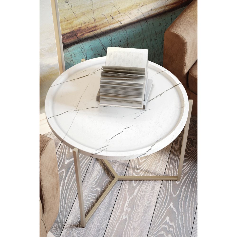 Стол журнальный Мебелик Бруно Белый мрамор/титан