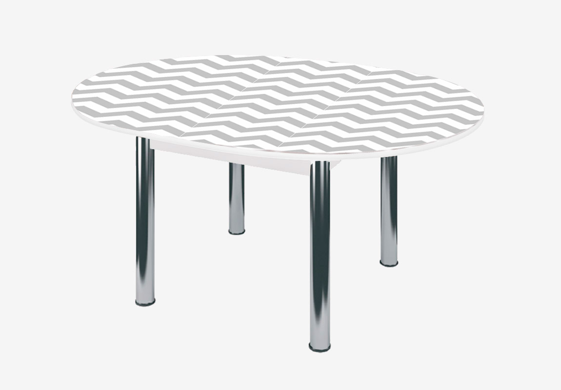 Стол круглый Можгинский лесокомбинат Бостон раздвижной, фотопечать Геометрия/белый/хром брифинг от компании Можгинский лесокомбинат является продуктом высокого качества, полностью соответствующим современным государственным стандартам.