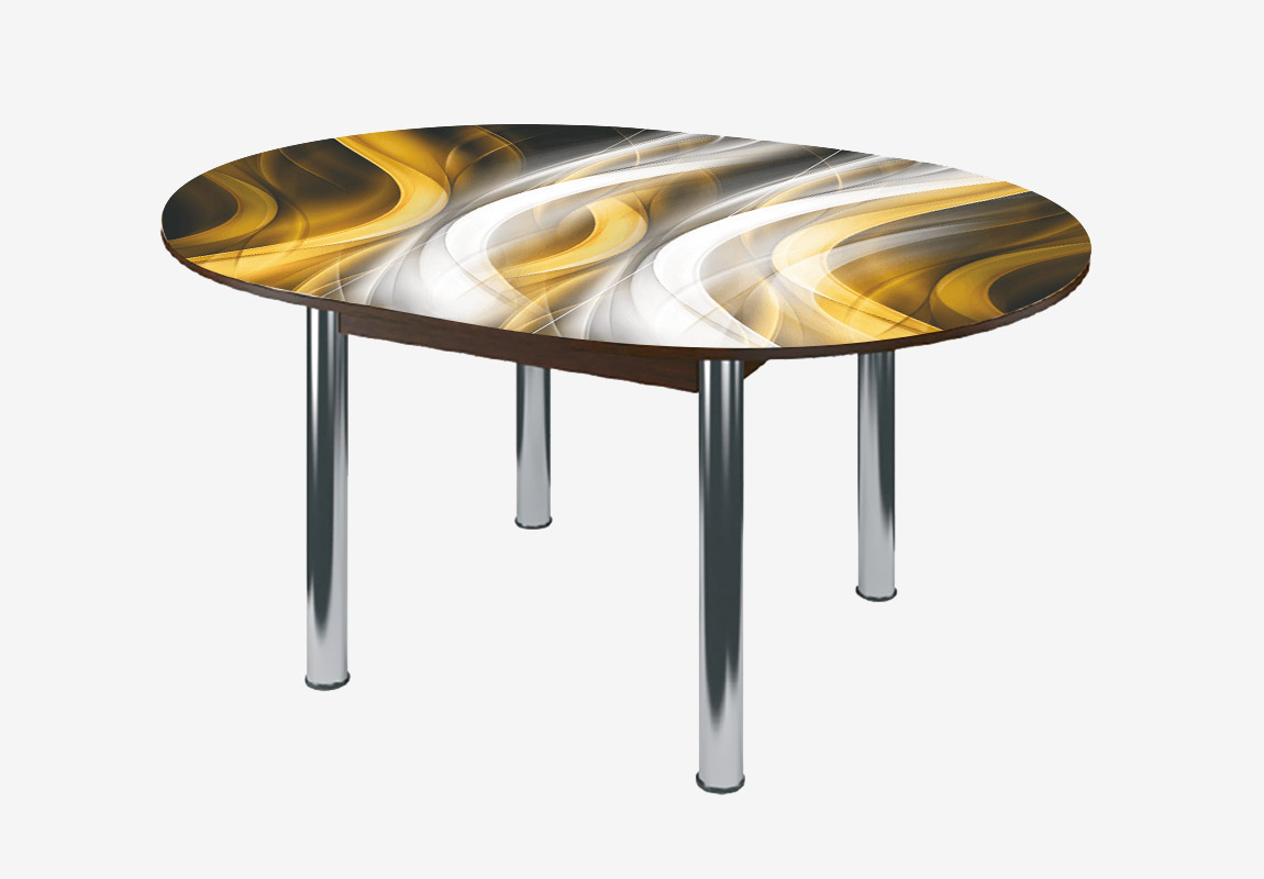 Стол круглый Можгинский лесокомбинат Бостон раздвижной, фотопечать Охра/венге/хром брифинг