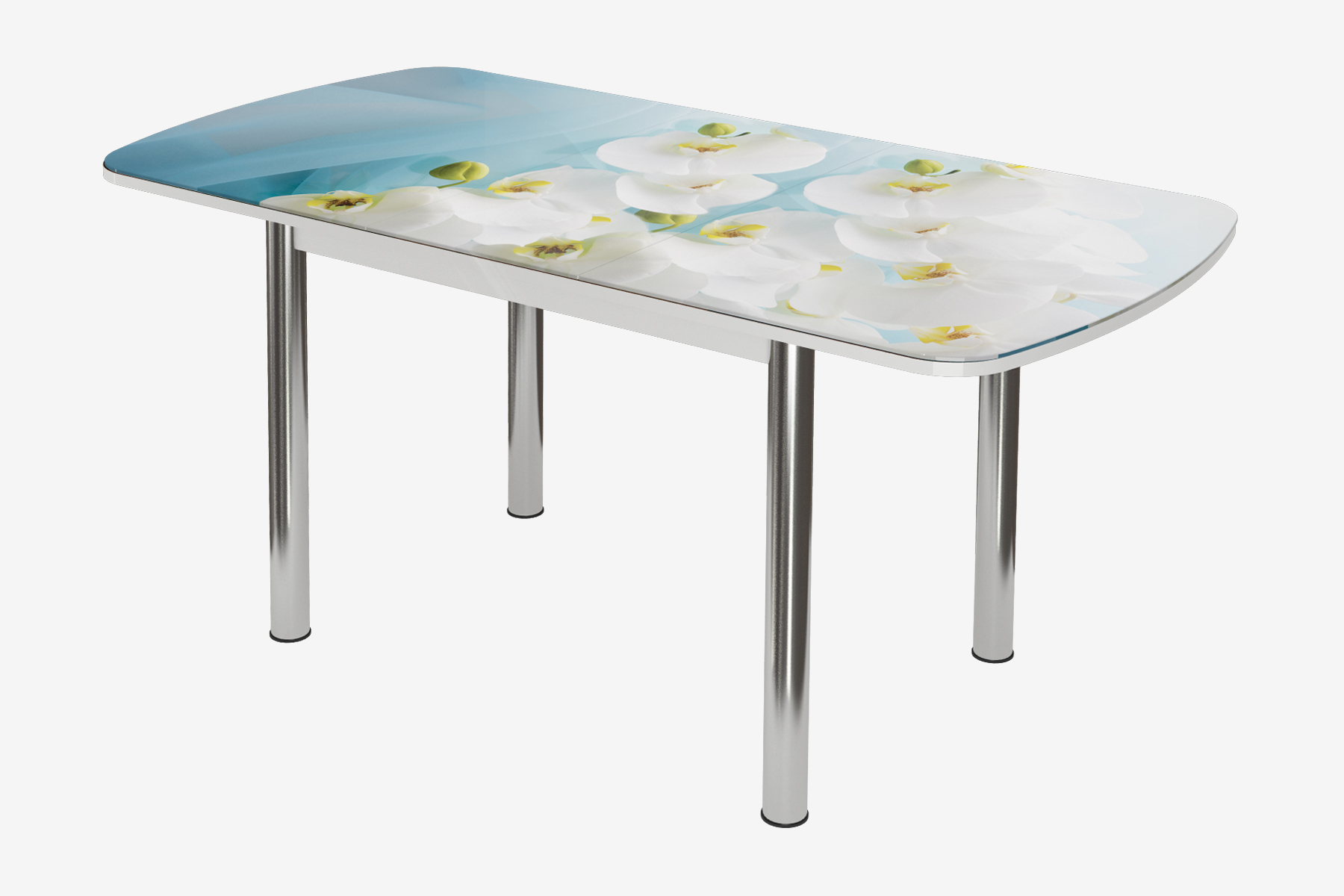 Стол Можгинский лесокомбинат Бостон-3 Белая орхидея, раздвижной, фотопечать/белый/хром брифинг