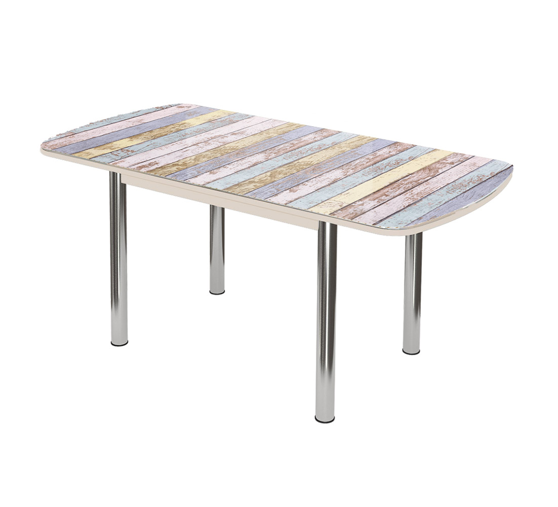 Стол Можгинский лесокомбинат Бостон-3 раздвижной, фотопечать Доски цветные/дуб атланта/хром брифинг