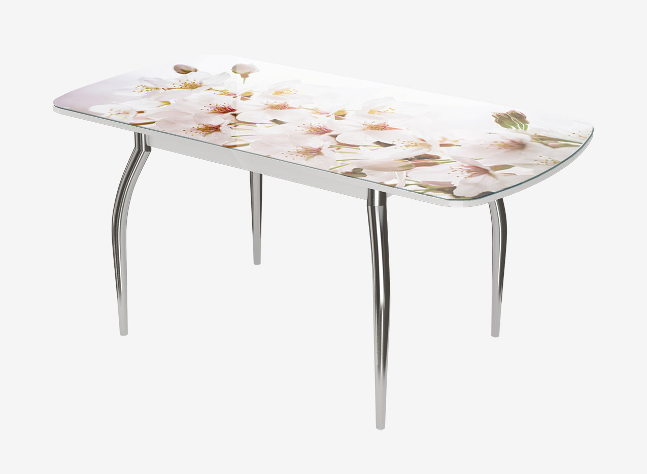 Стол раздвижной Можгинский лесокомбинат Бостон-3 ф/п Сакура, 1100700 мм, белый/хром триумф