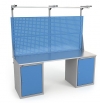 Верстаки серии ВЛ предназначены для слесарных и сборочных работ в мастерских, гаражах, учебных заведениях и на производствах. Максимальная равномерно распределенная нагрузка на верстак 1000 кг. Изготовлен шириной 2000 мм. Столешница верстака изготавливается в трех вариантах из фанеры 24 мм Ф, из фанеры 24 мм, покрытой оцинкованным железным листом ЦФ из фанеры 24 мм со стальным листом сверху 3 мм, окрашен порошковой краской МФ. Столешница установлена на две инструментальные тумбы ВЛ-010 с двумя полками и распашной дверцей с замком EURO-LOCKS Германия. Максимальная нагрузка на полку ВЛ-010 60 кг. Верстак укомплектован перфорированным экраном и консолью. На экран с помощью зацепов можно установить аксессуары. На консоль устанавливается освещение или бегунок. Освещение состоит из энергосберегающего светодиодного светильника, который обеспечивает 1200 Lx на рабочей поверхности. Совместная максимальная нагрузка на экран и консоль 50 кг. Верстак окрашен эпоксидной порошковой краской. Опоры, корпусы Тумб и Аксессуары серые RAL 7038, Экран, ящики и дверцы Тумб синие RAL 5012.Условия покупки