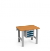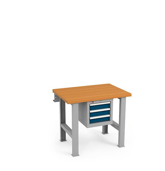 Верстаки серии ВС предназначены для промышленных предприятий и тяжелого машиностроения. Все элементы сварные. Максимальная равномерно распределенная нагрузка на верстак 1 500 кг. Столешница производится в трех вариантах массив бука 40 мм БУК фанера 40 мм Ф фанера 40 мм с предустановленным стальным листом 3 мм МФ. Столешница покрыта лаком натурального цвета. К столешнице можно прикрепить слесарную оснастку тиски и т.п.. Подвесная тумба ВС-003 имеет 3 выдвижных ящика. Ящики запираются на единый центральный замок EURO-LOCKS Германия, 2000 комбинаций и оснащены системой антиопрокидывания. Максимальная нагрузка на ящик 50 кг. Металлические элементы верстаков окрашены эпоксидной порошковой краской, устойчивой к механическим воздействиям и агрессивным жидкостям. Ящики, дверцы тумб и стойки экрана цвет темно-синий RAL 250 20 20, остальные элементы цвет серый RAL 7038.Условия покупки