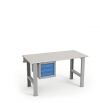 Верстаки серии ВЛ предназначены для слесарных и сборочных работ в мастерских, гаражах, учебных заведениях и на производствах. Максимальная равномерно распределенная нагрузка на верстак 750 кг. Изготовлен шириной 1500 мм. Столешница верстака изготавливается в трех вариантах из фанеры 24 мм Ф, из фанеры 24 мм, покрытой оцинкованным железным листом ЦФ из фанеры 24 мм со стальным листом сверху 3 мм, окрашен порошковой краской МФ. Столешница установлена на опоры. Верстак укомплектован подвесной тумбой ВЛ-003 с 3 выдвижными ящиками Верстак окрашен эпоксидной порошковой краской. Опоры, корпусы Тумб и Аксессуары серые RAL 7038, Экран, ящики и дверцы Тумб синие RAL 5012.Условия покупки