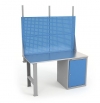 Верстаки серии ВЛ предназначены для слесарных и сборочных работ в мастерских, гаражах, учебных заведениях и на производствах. Максимальная равномерно распределенная нагрузка на верстак 1000 кг. Изготовлен шириной 1500 мм. Столешница верстака изготавливается в трех вариантах из фанеры 24 мм Ф, из фанеры 24 мм, покрытой оцинкованным железным листом ЦФ из фанеры 24 мм со стальным листом сверху 3 мм, окрашен порошковой краской МФ. Столешница установлена на опору и инструментальную тумбу ВЛ-010 с двумя полками и распашной дверцей.Максимальная нагрузка на полку тумбы 60 кг. На верстак установлен экран перфорированный. На экран с помощью зацепов навешиваются аксессуары. Верстак окрашен эпоксидной порошковой краской. Опоры, корпусы Тумб и Аксессуары серые RAL 7038, Экран, ящики и дверцы Тумб синие RAL 5012.Условия покупки