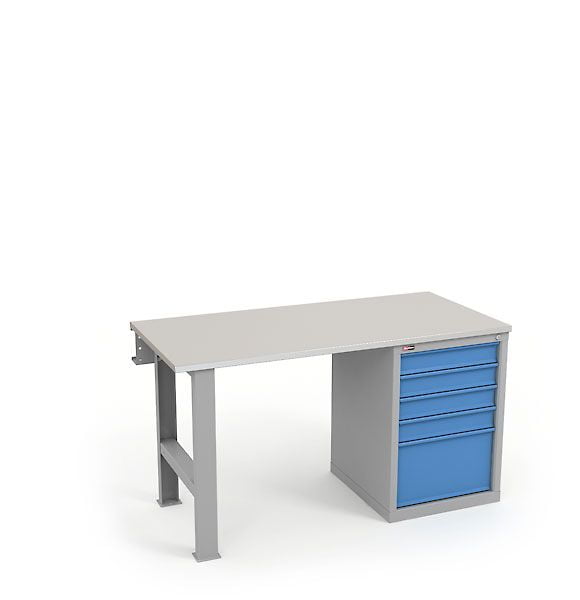 Верстаки серии ВЛ предназначены для слесарных и сборочных работ в мастерских, гаражах, учебных заведениях и на производствах. Максимальная равномерно распределенная нагрузка на верстак 1000 кг. Изготовлен шириной 1500 мм. Столешница верстака изготавливается в трех вариантах из фанеры 24 мм Ф, из фанеры 24 мм, покрытой оцинкованным железным листом ЦФ из фанеры 24 мм со стальным листом сверху 3 мм, окрашен порошковой краской МФ. Столешница установлена на опору и инструментальную тумбу ВЛ-015 с 5 выдвижными ящиками. Максимальная динамическая нагрузка на ящик тумбы 40 кг. Максимальная статическая нагрузка на ящик 80 кг. Верстак окрашен эпоксидной порошковой краской. Опоры, корпусы Тумб и Аксессуары серые RAL 7038, Экран, ящики и дверцы Тумб синие RAL 5012.Условия покупки