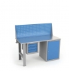 Верстаки серии ВЛ предназначены для слесарных и сборочных работ в мастерских, гаражах, учебных заведениях и на производствах. Максимальная равномерно распределенная нагрузка на верстак 1000 кг. Изготовлен шириной 1500 мм. Столешница верстака изготавливается в трех вариантах из фанеры 24 мм Ф, из фанеры 24 мм, покрытой оцинкованным железным листом ЦФ из фанеры 24 мм со стальным листом сверху 3 мм, окрашен порошковой краской МФ. Столешница установлена на опору и инструментальную тумбу ВЛ-015 с 5 выдвижными ящиками. Максимальная динамическая нагрузка на ящик тумбы 40 кг.Максимальная статическая нагрузка на ящик 80 кг.Также верстак оборудован подвесной тумбой ВЛ-003 с 3 выдвижными ящиками На верстак установлен экран перфорированный. На экран с помощью зацепов навешиваются аксессуары. Верстак окрашен эпоксидной порошковой краской. Опоры, корпусы Тумб и Аксессуары серые RAL 7038, Экран, ящики и дверцы Тумб синие RAL 5012.Условия покупки