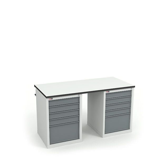 Верстаки созданы специально для электромонтажных работ и радиоэлектронной промышленности. Все элементы верстака ESD обладают антистатическими свойствами согласно современным стандартам ESD-защиты. Соответствие стандартам ГОСТ Р 53734.5.1-2009. Два варианта столешницы антиcтатическая ДСП Thermopal 24 мм, производство Германия ESD обычная ДСП 24 мм ДСП. При установке данной столешницы верстак теряет антистатические свойства. Максимальная нагрузка на столешницу 300 кг. Тумба ВЛ-015 ESD имеет 5 выдвижных ящиков. Ящики запираются на общий замок EURO-LOCKS Германия, 2000 комбинаций. Максимальная нагрузка на ящик тумб ВЛ-015 ESD 40 кг. Каждый элемент окрашен специальной порошковой краской, которая обеспечивает антистатическую защиту. Стойки Экрана, ящики и дверцы тумб цвет графитовый RAL 7012, остальные элементы цвет светло-серый RAL 7035.Условия покупки