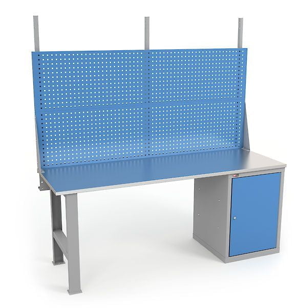 Верстаки серии ВЛ предназначены для слесарных и сборочных работ в мастерских, гаражах, учебных заведениях и на производствах. Максимальная равномерно распределенная нагрузка на верстак 1000 кг. Изготовлен шириной 2000 мм. Столешница верстака изготавливается в трех вариантах из фанеры 24 мм Ф, из фанеры 24 мм, покрытой оцинкованным железным листом ЦФ из фанеры 24 мм со стальным листом сверху 3 мм, окрашен порошковой краской МФ. Столешница установлена на опору и инструментальную тумбу ВЛ-015 с 5 выдвижными ящиками. Максимальная нагрузка на ящик 40 кг. Верстак укомплектован перфорированным экраном. На экран с помощью зацепов можно установить аксессуары. Верстак окрашен эпоксидной порошковой краской. Опоры, корпусы Тумб и Аксессуары серые RAL 7038, Экран, ящики и дверцы Тумб синие RAL 5012.Условия покупки
