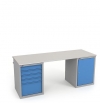 Верстаки серии ВЛ предназначены для слесарных и сборочных работ в мастерских, гаражах, учебных заведениях и на производствах. Максимальная равномерно распределенная нагрузка на верстак 1000 кг. Изготовлен шириной 2000 мм. Столешница верстака изготавливается в трех вариантах из фанеры 24 мм Ф, из фанеры 24 мм, покрытой оцинкованным железным листом ЦФ из фанеры 24 мм со стальным листом сверху 3 мм, окрашен порошковой краской МФ. Столешница установлена на инструментальную тумбу ВЛ-015 и инструментальную тумбу ВЛ-010. Тумба ВЛ-015 имеет 5 выдвижных ящиков, запирающихся на единый замок EURO-LOCKS Германия. Тумба ВЛ-010 укомплектована 2 полками и распашной дверцей с замком EURO-LOCKS Германия. Максимальная динамическая нагрузка на ящик ВЛ-015 40 кг.Максимальная статическая нагрузка на ящик 80 кг.Максимальная нагрузка на полку ВЛ-010 60 кг. Верстак окрашен эпоксидной порошковой краской. Опоры, корпусы Тумб и Аксессуары серые RAL 7038, Экран, ящики и дверцы Тумб синие RAL 5012.Условия покупки