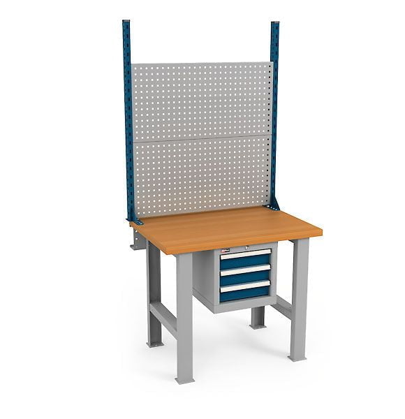 Верстаки серии ВС предназначены для промышленных предприятий и тяжелого машиностроения. Благодаря усиленной конструкции, мощной столешнице и специальным комплектующим, они выдержат тяжелые детали и интенсивную эксплуатацию. Максимальная равномерно распределенная нагрузка на верстак 1 500 кг. Столешница производится в трех вариантах массив бука 40 мм БУК фанера 40 мм Ф фанера 40 мм с предустановленным стальным листом 3 мм МФ. Подвесная тумба ВС-003 имеет 3 выдвижных ящика. Ящики запираются на единый центральный замок EURO-LOCKS Германия, 2000 комбинаций и оснащены системой антиопрокидывания. Максимальная нагрузка на ящик 50 кг. На верстак установлен Экран перфорированный Э2. На экран с помощью зацепов легко устанавливаются полки и другие аксессуары. Максимальная нагрузка на Экран 100 кг. Металлические элементы верстаков окрашены эпоксидной порошковой краской, устойчивой к механическим воздействиям и агрессивным жидкостям. Ящики, дверцы тумб и стойки экрана цвет темно-синий RAL 250 20 20, остальные элементы цвет серый RAL 7038.Условия покупки