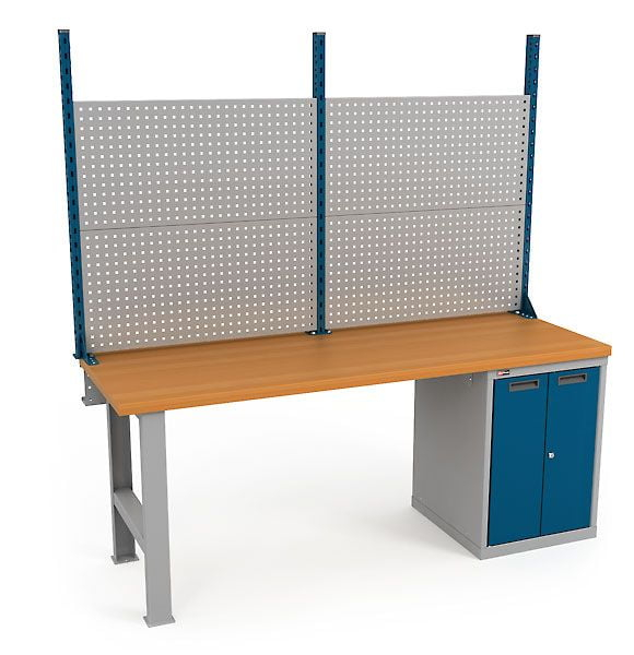 Верстаки серии ВС предназначены для промышленных предприятий и тяжелого машиностроения. Все элементы сварные. Максимальная равномерно распределенная нагрузка на верстак 1 500 кг. Столешница производится в трех вариантах массив бука 40 мм БУК фанера 40 мм Ф фанера 40 мм с предустановленным стальным листом 3 мм МФ. Тумба ВС-010 укомплектована перфорированными экранами на боковых стенках. Дверцы закрываются на замок EURO-LOCKS Германия, 2000 комбинаций. В Тумбу можно установить Полки для Тумб ВС-010 и перфорированные Экраны на заднюю стенку приобретаются отдельно. Максимальная нагрузка на полку тумб 200 кг. Под верстак можно установить Полку нижнюю из фанеры 24 мм. Максимальная нагрузка на полку 100 кг. На верстак установлен Экран перфорированный Э2. В нижнюю часть экрана по желанию устанавливается короб для коммуникаций. На экран с помощью зацепов легко устанавливаются полки и другие аксессуары. Максимальная нагрузка на Экран 100 кг. Металлические элементы верстаков окрашены эпоксидной порошковой краской, устойчивой к механическим воздействиям и агрессивным жидкостям. Ящики, дверцы тумб и стойки экрана цвет темно-синий RAL 250 20 20, остальные элементы цвет серый RAL 7038.Условия покупки