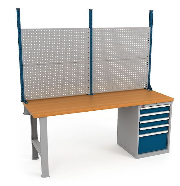 Верстаки серии ВС предназначены для промышленных предприятий и тяжелого машиностроения. Все элементы сварные. Максимальная равномерно распределенная нагрузка на верстак 1 500 кг. Столешница производится в трех вариантах массив бука 40 мм БУК фанера 40 мм Ф фанера 40 мм с предустановленным стальным листом 3 мм МФ. Тумба ВС-015 имеет 5 и выдвижных ящика соответственно. Ящики запираются на единый центральный замок EURO-LOCKS Германия, 2000 комбинаций и оснащены системой антиопрокидывания. Максимальная нагрузка на ящик до 100 кг. Под верстак можно установить Полку нижнюю из фанеры 24 мм. Максимальная нагрузка на полку 100 кг. На верстак установлен Экран перфорированный Э2. В нижнюю часть экрана по желанию устанавливается короб для коммуникаций. На экран с помощью зацепов легко устанавливаются полки и другие аксессуары. Максимальная нагрузка на Экран 100 кг. Металлические элементы верстаков окрашены эпоксидной порошковой краской, устойчивой к механическим воздействиям и агрессивным жидкостям. Ящики, дверцы тумб и стойки экрана цвет темно-синий RAL 250 20 20, остальные элементы цвет серый RAL 7038.Условия покупки