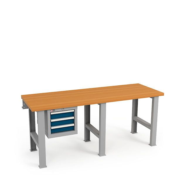 Верстаки серии ВС предназначены для промышленных предприятий и тяжелого машиностроения. Все элементы сварные. Максимальная равномерно распределенная нагрузка на верстак 3 000 кг. Столешница производится в трех вариантах массив бука 40 мм БУК фанера 40 мм Ф фанера 40 мм с предустановленным стальным листом 3 мм МФ. Под верстак можно установить Полку нижнюю из фанеры 24 мм. Максимальная нагрузка на полку 100 кг. Подвесная тумба ВС-003 имеет 3 выдвижных ящика. Ящики запираются на единый центральный замок EURO-LOCKS Германия, 2000 комбинаций и оснащены системой антиопрокидывания. Максимальная нагрузка на ящик 50 кг. Металлические элементы верстаков окрашены эпоксидной порошковой краской, устойчивой к механическим воздействиям и агрессивным жидкостям. Ящики, дверцы тумб и стойки экрана цвет темно-синий RAL 250 20 20, остальные элементы цвет серый RAL 7038.Условия покупки