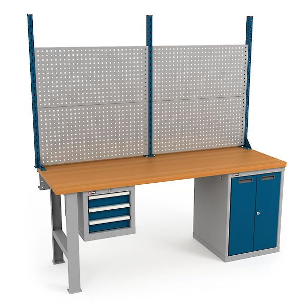 Верстаки серии ВС предназначены для промышленных предприятий и тяжелого машиностроения. Все элементы сварные. Максимальная равномерно распределенная нагрузка на верстак 1 500 кг. Столешница производится в трех вариантах массив бука 40 мм БУК фанера 40 мм Ф фанера 40 мм с предустановленным стальным листом 3 мм МФ. Тумба ВС-010 укомплектована перфорированными экранами на боковых стенках. Дверцы закрываются на замок EURO-LOCKS Германия, 2000 комбинаций. В Тумбу можно установить Полки для Тумб ВС-010 приобретаются отдельно. Максимальная нагрузка на полку тумб 200 кг. Подвесная тумба ВС-003 имеет 3 выдвижных ящика. Ящики запираются на единый центральный замок EURO-LOCKS Германия, 2000 комбинаций и оснащены системой антиопрокидывания. Максимальная нагрузка на ящик 50 кг. Под верстак можно установить Полку нижнюю из фанеры 24 мм. Максимальная нагрузка на полку 100 кг. На верстак установлен Экран перфорированный Э2. В нижнюю часть экрана по желанию устанавливается короб для коммуникаций. На экран с помощью зацепов легко устанавливаются полки и другие аксессуары. Максимальная нагрузка на Экран 100 кг. Металлические элементы верстаков окрашены эпоксидной порошковой краской, устойчивой к механическим воздействиям и агрессивным жидкостям. Ящики, дверцы тумб и стойки экрана цвет темно-синий RAL 250 20 20, остальные элементы цвет серый RAL 7038.Условия покупки