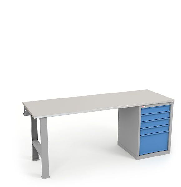 Верстаки серии ВЛ предназначены для слесарных и сборочных работ в мастерских, гаражах, учебных заведениях и на производствах. Максимальная равномерно распределенная нагрузка на верстак 1000 кг. Изготовлен шириной 2000 мм. Столешница верстака изготавливается в трех вариантах из фанеры 24 мм Ф, из фанеры 24 мм, покрытой оцинкованным железным листом ЦФ из фанеры 24 мм со стальным листом сверху 3 мм, окрашен порошковой краской МФ. Столешница установлена на опору и инструментальную тумбу ВЛ-015 с 5 выдвижными ящиками. Максимальная динамическая нагрузка на ящик 40 кг. Максимальная статическая нагрузка на ящик 80 кг. Верстак окрашен эпоксидной порошковой краской. Опоры, корпусы Тумб и Аксессуары серые RAL 7038, Экран, ящики и дверцы Тумб синие RAL 5012.Условия покупки