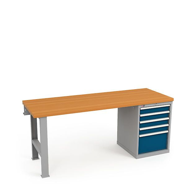 Верстаки серии ВС предназначены для промышленных предприятий и тяжелого машиностроения.Все элементы сварные. Максимальная равномерно распределенная нагрузка на верстак 1 500 кг. Столешница производится в трех вариантах массив бука 40 мм БУК фанера 40 мм Ф фанера 40 мм с предустановленным стальным листом 3 мм МФ. Тумба ВС-015 имеет 5 и выдвижных ящика соответственно. Ящики запираются на единый центральный замок EURO-LOCKS Германия, 2000 комбинаций и оснащены системой антиопрокидывания. Максимальная нагрузка на ящик до 100 кг. Под верстак можно установить Полку нижнюю из фанеры 24 мм. Максимальная нагрузка на полку 100 кг. Металлические элементы верстаков окрашены эпоксидной порошковой краской, устойчивой к механическим воздействиям и агрессивным жидкостям. Ящики, дверцы тумб и стойки экрана цвет темно-синий RAL 250 20 20, остальные элементы цвет серый RAL 7038.Условия покупки