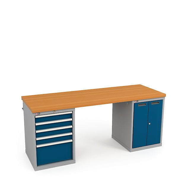 Верстаки серии ВС предназначены для промышленных предприятий и тяжелого машиностроения. Все элементы сварные. Максимальная равномерно распределенная нагрузка на верстак 3 000 кг. Столешница производится в трех вариантах массив бука 40 мм БУК фанера 40 мм Ф фанера 40 мм с предустановленным стальным листом 3 мм МФ. Тумба ВС-015 имеет 5 выдвижных ящиков. Ящики запираются на единый центральный замок EURO-LOCKS Германия, 2000 комбинаций и оснащены системой антиопрокидывания. Тумба ВС-010 укомплектована перфорированными экранами на боковых стенках. Дверцы закрываются на замок EURO-LOCKS Германия, 2000 комбинаций. В Тумбу можно установить Полки для Тумб ВС-010 приобретаются отдельно. Максимальная нагрузка на ящик тумб ВС-015 до 100 кг. Максимальная нагрузка на полку ВС-010 200 кг. Металлические элементы верстаков окрашены эпоксидной порошковой краской, устойчивой к механическим воздействиям и агрессивным жидкостям. Ящики, дверцы тумб и стойки экрана цвет темно-синий RAL 250 20 20, остальные элементы цвет серый RAL 7038.Условия покупки