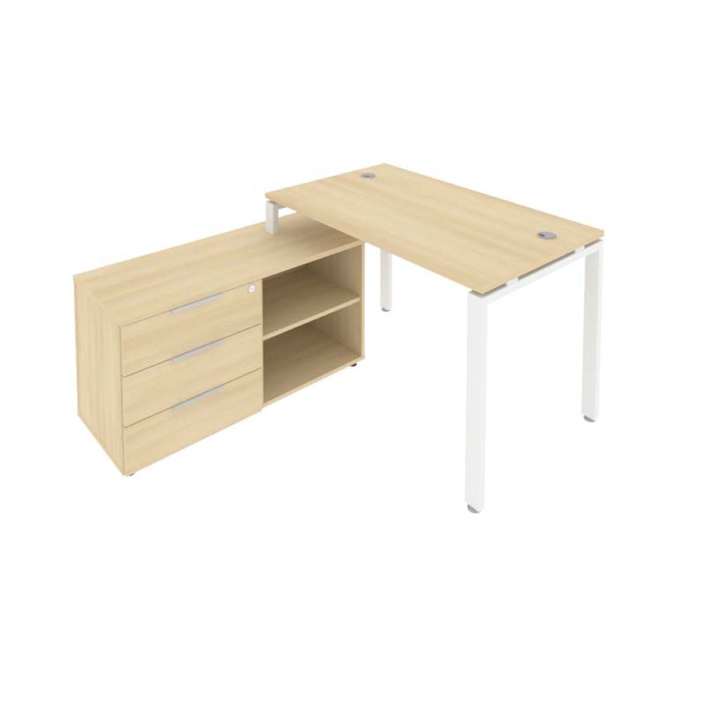 Рабочая станция на П-образном м/к с опорной тумбой левая Рива Metal System Б.РС-СТС-2.2 Л Акация/Белый